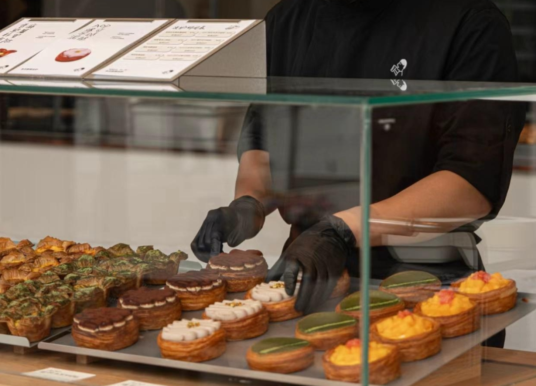 為了讓顧客看到蛋糕的制作過程,店內設有大面積的全透明開放式廚房。從蛋糕胚出爐、抹面、裱花到裝點,顧客可以像觀看一場實驗一樣,直擊店員操作的每一個環(huán)節(jié)。