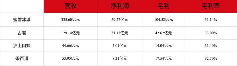 以高利潤位居前列的蜜雪冰城與古茗顯然是典型案例。