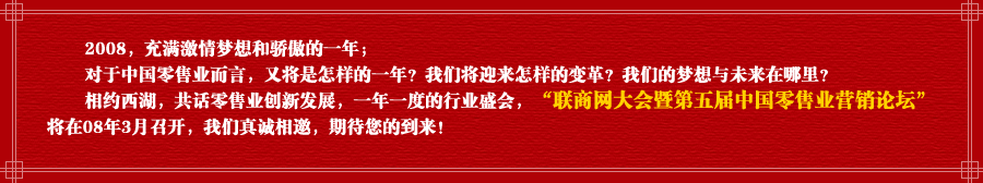 [資訊動(dòng)態(tài)]·2008聯(lián)商網(wǎng)大會(huì)暨第五屆營(yíng)銷(xiāo)大會(huì)精華版(上)[2008-4-8 16:12:58]