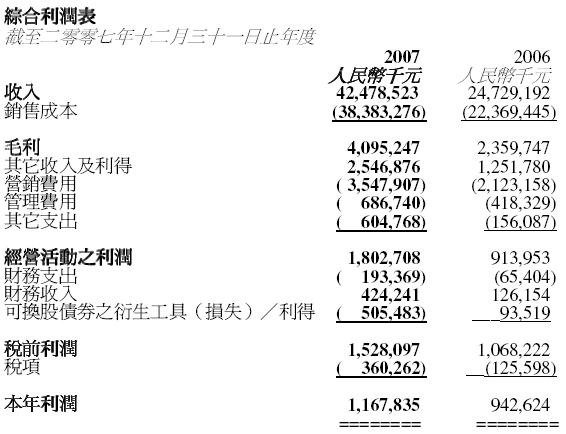 國(guó)美電器07年度業(yè)績(jī)報(bào)告 稅前利潤(rùn)15.28億