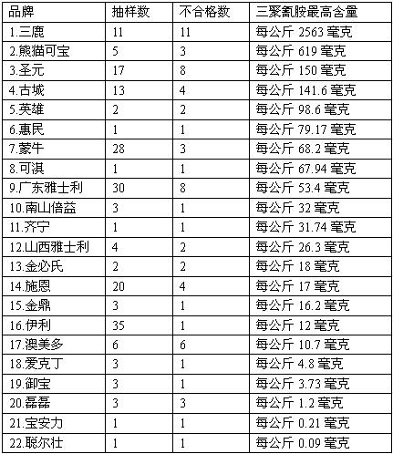 蒙牛、伊利等22家奶粉檢出三聚氰胺