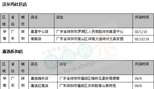備注:(由于沃爾瑪年末開店較多,所以新開門店將放下面,等2010年完了以后再統(tǒng)一統(tǒng)計進表中,帶來的不便,望見諒!)