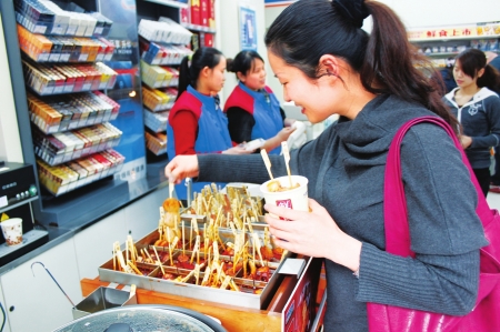 隨著成都城市化進(jìn)程加快,市郊口岸將成便利店下一步爭(zhēng)奪熱點(diǎn)。在郫縣富士康園區(qū)公寓內(nèi),紅旗連鎖和