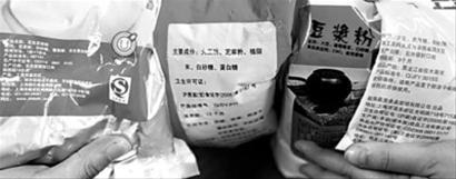 市面上豆?jié){粉包裝上的配料說明不一 晨報(bào)記者 陳征 實(shí)習(xí)生 李霄壤 現(xiàn)場圖片