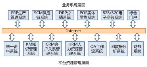 (1)業(yè)務(wù)系統(tǒng)層面,主要針對內(nèi)容提供商、渠道商(分銷商、實體零售商、虛擬零售商)進行實際業(yè)務(wù)時使用的系統(tǒng),主要包括ERP生產(chǎn)管理系統(tǒng)、SCM供應(yīng)鏈系統(tǒng)、DRP分銷系統(tǒng)、POS實體零售系統(tǒng)、B2B/B2C電子商務(wù)系統(tǒng)、綜合門戶。