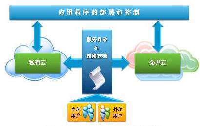 同時,零售云計算解決方案又必須為零售企業(yè)外部的用戶群體,包括供應商、客戶、加盟商等提供基于泛生態(tài)圈的云服務。而對于外部用戶,公共云的公平開放、有限準入、按需付費等特性又是高度契合的,因而零售云計算方案中又會融入公共云的元素,從而成為混合云。特別地,這里的外部用戶并非指所有的公眾人群,而是特指零售企業(yè)的合作伙伴,有一定的資質要求,此類面向特定人群開放的公共云又可被稱為社區(qū)云。混合云兼顧私有云與公共云的優(yōu)點,模式示意圖如下: