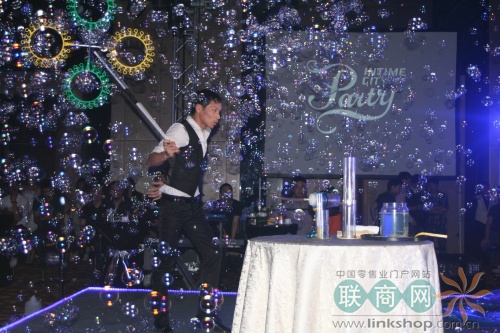 圖為銀泰城招商及客戶答謝交流會(huì)現(xiàn)場(chǎng)的韓國(guó)泡泡秀