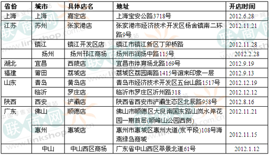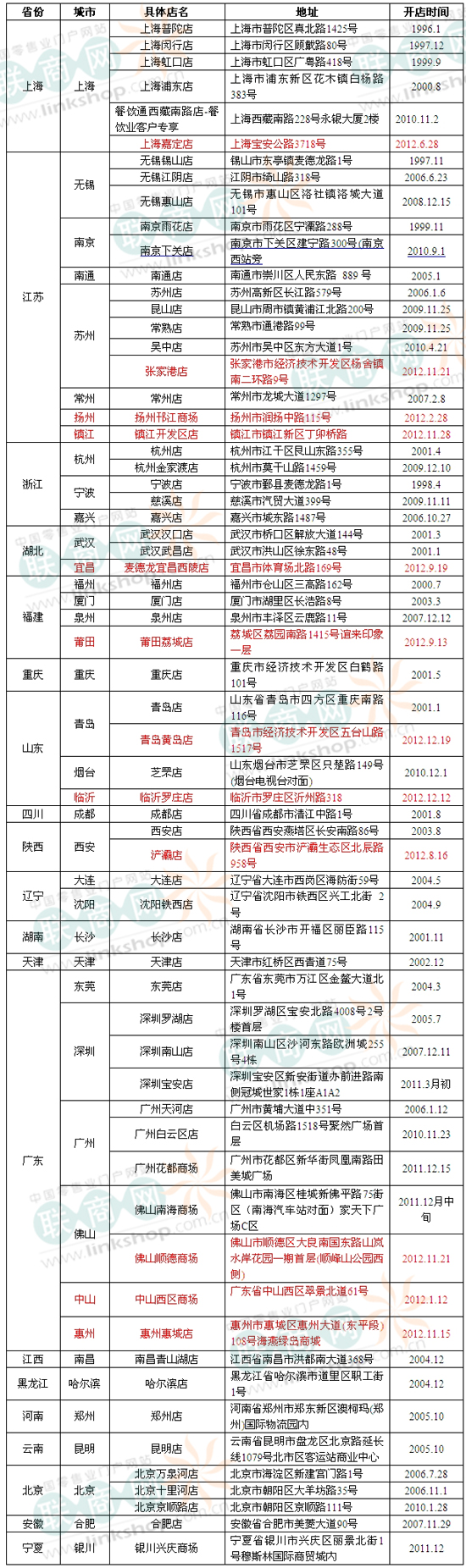 一、2012年麥德龍?jiān)谌A內(nèi)地新開門店(12家)