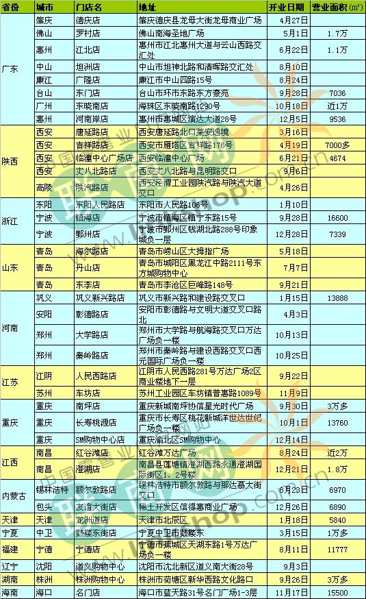 獨家:華潤萬家2012在華新開大賣場盤點