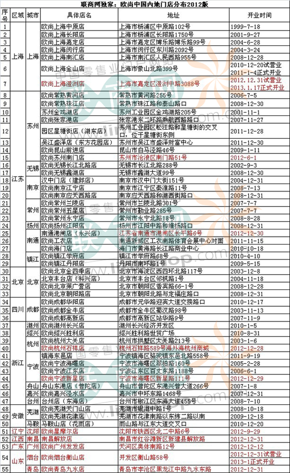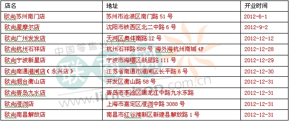 歐尚2012年在華新開10家店 總數(shù)達(dá)55家