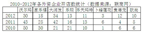 相關(guān)閱讀:2012年外資超市在華門店數(shù)量對(duì)比