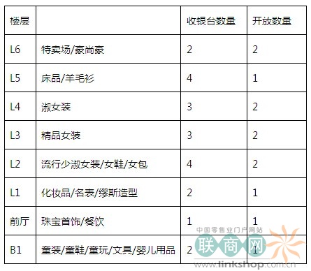 二樓流行服飾收銀臺(tái)數(shù)量:樓層平面圖顯示4個(gè)(實(shí)際當(dāng)天開(kāi)放3個(gè))