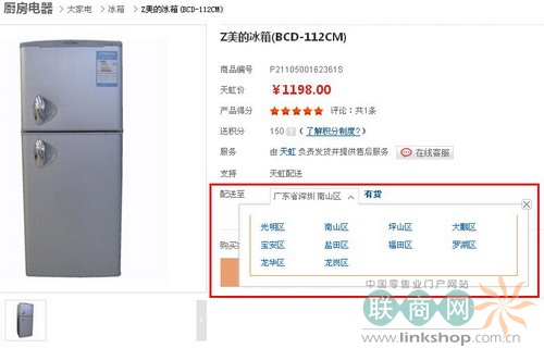 另外,一樓的服務(wù)臺(tái)放了一個(gè)ipad,宣傳的是天虹的網(wǎng)上商城。我問(wèn)服務(wù)員,是否在網(wǎng)上買(mǎi)了東西就可以在門(mén)店自提,服務(wù)員告訴我是可以的。我說(shuō)那我買(mǎi)個(gè)冰箱是不是也能自提呢?姐姐一下子就被問(wèn)住了,只有打電話詢問(wèn),電話那頭的人居然也說(shuō),可以到門(mén)店自提,不過(guò)運(yùn)費(fèi)需要自理?磥(lái)關(guān)于這一塊培訓(xùn)不是很到位哦,因?yàn)榫W(wǎng)上商城寫(xiě)的是只配送廣東地區(qū)部分城市。