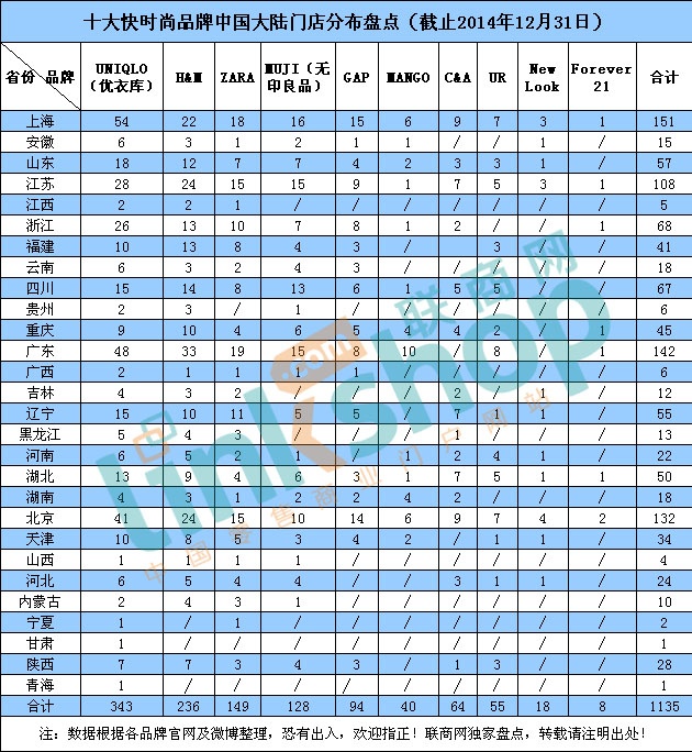 解讀2014快時(shí)尚在華發(fā)展情況 含門店分布