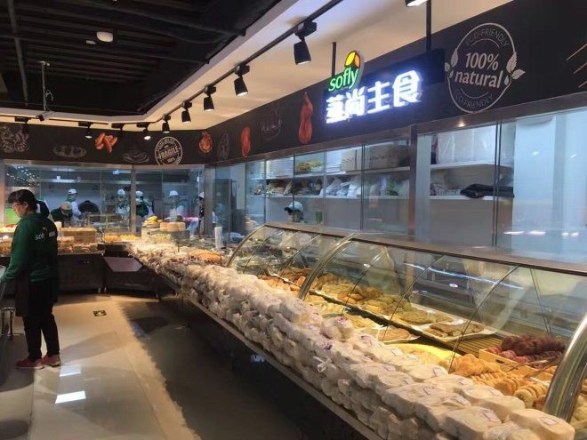 據(jù)悉,Sofly首航南庭新苑店位于社區(qū)服務(wù)中心的二層,營業(yè)面積不到1200平,現(xiàn)經(jīng)營單品8000余種,該店定位生鮮加強型社區(qū)食品超市,生鮮經(jīng)營面積占比高達60%。賣場通過電梯的設(shè)置精妙布局了顧客出入口,根據(jù)狹長的建筑結(jié)構(gòu),因勢利導把生鮮區(qū)、百貨區(qū)、食品區(qū)、收銀區(qū)進行了科學布局,保證動線合理的同時也方便了顧客的購物需要。