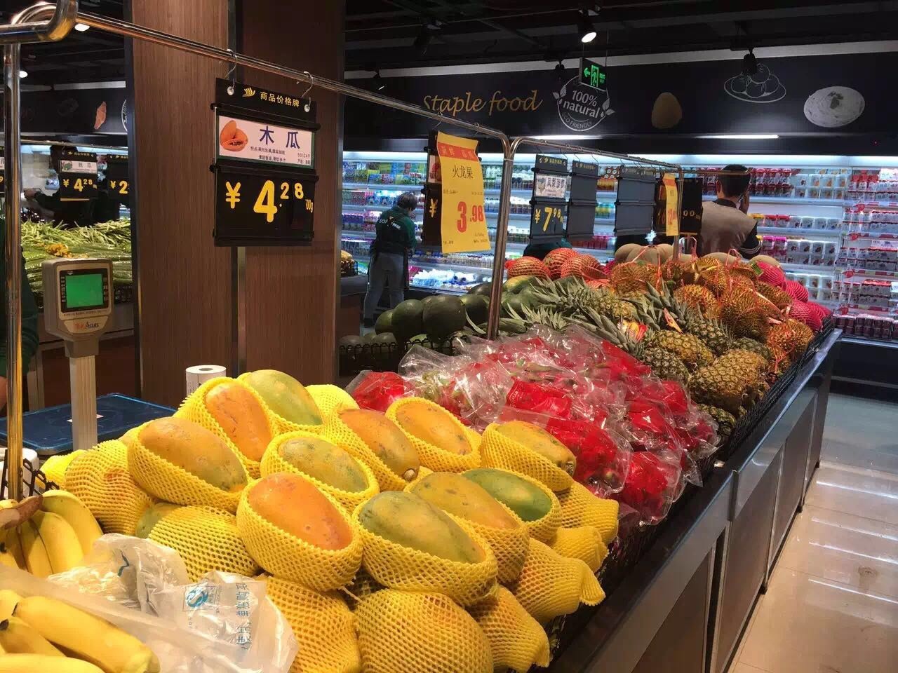 第四:生鮮不僅過程管控好,現(xiàn)場表現(xiàn)更是驚人。首航是業(yè)內(nèi)生鮮自采方面的佼佼者,但是通過這家店的現(xiàn)場看首航生鮮經(jīng)營,不僅品類選擇多,而且品項做的全,記者在現(xiàn)場看到了直隸黑豬和湘佳湖南散養(yǎng)的麻鴨和土雞。這家生鮮加強型超市的現(xiàn)場加工和現(xiàn)場陳列更是令人豎大拇指,生鮮強則店強。