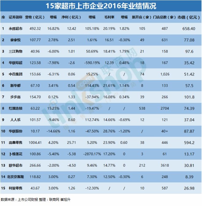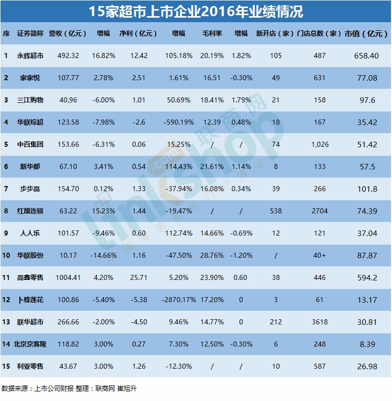 五個(gè)維度解讀15家超市上市企業(yè)2016年報(bào)