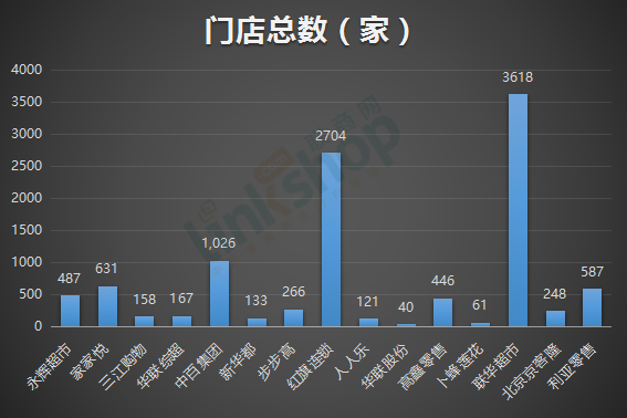 (注:華聯(lián)股份因財(cái)報(bào)中未披露開店數(shù)據(jù),上圖只體現(xiàn)14家企業(yè)數(shù)據(jù))