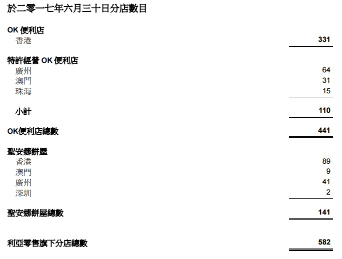 公司于年內首六個月在香港及澳門開設四家新圣安娜餅屋并有四家餅屋結業(yè),于2017年6月30日,圣安娜餅屋總數為98家,與2016年底總數相同。上半年,圣安娜餅屋于廣州及深圳之總店鋪網絡遍及43個地點。