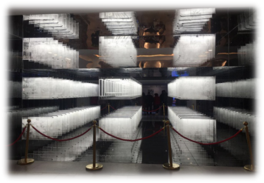 最讓我驚喜的是第一百貨七樓名為“100弄”交互體驗區(qū)。從自動扶梯走上七樓最先映入眼簾的就是一個極富未來感的展品,可以說是名副其實的“眼前一亮”了。