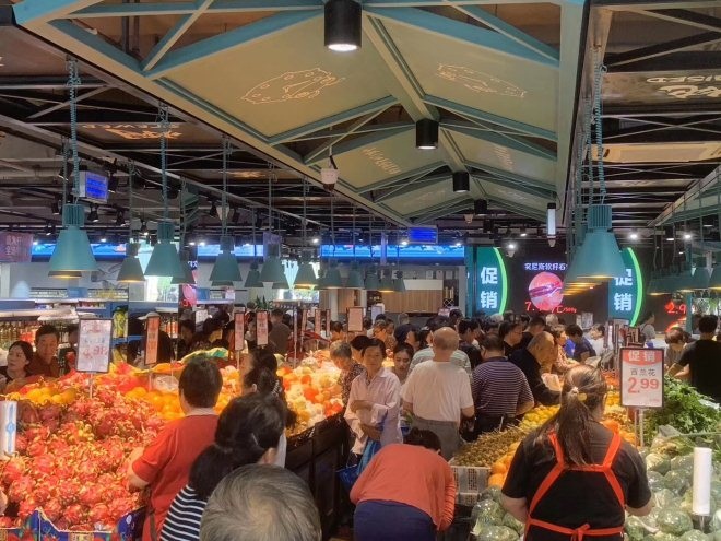 該店位于合肥市臨泉路,屬于樂城超市四年來打造的600平經(jīng)營面積的新店型。開業(yè)吸引了當(dāng)?shù)仡櫩涂駸岬淖放酰T店被迫多次限流。