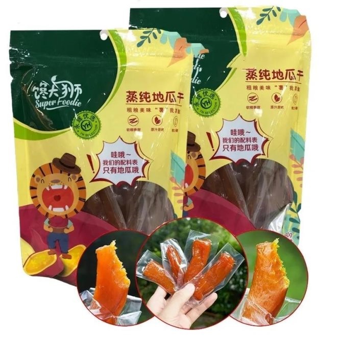 永輝自有品牌“饞大獅蒸純地瓜干160g”上市時(shí)間2020年8月。甄選濟(jì)薯26號(hào)原料加工零添加倒蒸地瓜干,真空獨(dú)立包裝,外袋為自立袋設(shè)計(jì)。傳統(tǒng)地瓜干配以時(shí)尚外袋,更加迎合年輕群體受眾度。