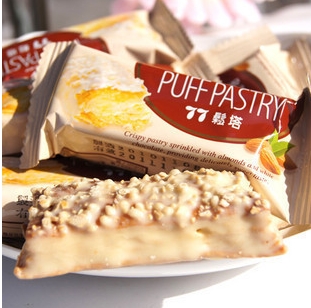 松塔一斤大概28個(gè)左右,按批次的松塔大小決定一斤的個(gè)數(shù). 細(xì)膩?zhàn)鞴ざ傻亩鄬哟物炂,?xì)致酥脆,層次分明,口感豐富;加上杏仁顆粒及白巧克力提味,風(fēng)味獨(dú)特,清爽甜蜜。臺(tái)灣蜜蘭諾杏仁千層餅是臺(tái)灣有名的特產(chǎn),用料十足,回味無窮,如果硬要點(diǎn)缺點(diǎn)那就是太酥脆,咬一口很容易撒在地上很多渣,哈哈。。不利于家庭衛(wèi)生 酥脆是松塔特色,酥鬆派餅層次分明,上層散佈杏仁片,杏仁果粒點(diǎn)綴其中,白巧克力搭配酥脆的千層餅,先嚐到濃郁的巧克力甜味,後與千層餅融合,甜度恰到好處,增幸福好滋味~~~~~~,是熱量偏低的MM最愛哦,只要您嘗嘗,肯定會(huì)愛死它的,嘿嘿,不用擔(dān)心熱量高哦~~~