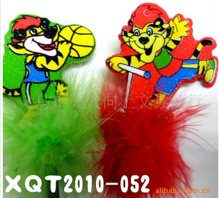 1:本產(chǎn)品筆身為塑料桿(苯。,外繞晶瑩靚麗的飾帶。筆帽是帶氣孔軟塑料套, 2:筆芯油墨為3.5CM,分別有蘭色、黑色兩種,筆芯書寫流暢。 3:羽毛是經(jīng)過多道工序生產(chǎn)而成。迎風(fēng)飄揚(yáng)的多色羽毛與筆桿顏色溶為一體,再搭配各種卡通造型,漂亮的花朵,愛心飾品,讓整支筆充滿活力。 產(chǎn)品名稱:卡通工藝筆 產(chǎn)品顏色:大紅、粉紅、玫紅、藍(lán)色、綠色、黃色、 產(chǎn)品型號(hào):XQT2010-052 圓珠筆 產(chǎn)品規(guī)格:筆桿0.6*20CM 總長26CM 包裝方式:24支/OPP 2400支/箱 外箱規(guī)格: 55*45*45CM 毛/凈重:15/14 KG