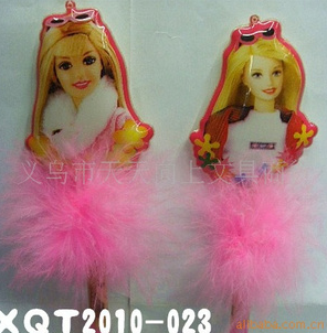 供應(yīng)卡通芭芘女孩羽毛工藝筆