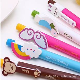 品牌:韓國(guó)-快樂童年圓珠筆 Ball-Point Pen 筆高:135mm 規(guī)格:0.7mm 藍(lán)色 圓珠筆 散裝 款式:6款 猴子 兔子 彩虹 和平鴿 青蛙 翅膀(隨機(jī)混發(fā))