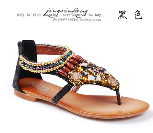 夏新款 女涼鞋 摩洛哥奢華 王朝 民族風(fēng) 幻彩 夾腳平底涼鞋