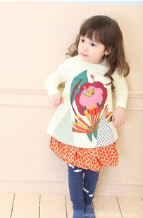 品牌:QERKIDS 面料:純棉 尺碼:90-130,32元/件 140-150,39元/件 此款衣服款式漂亮,胸前的花朵除了印花還有拼接圖案,后開(kāi)扣方便穿脫 可以搭配配套的小魚(yú)打底褲