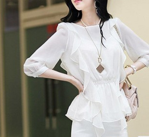 2011新春裝夏裝 韓版女裝 雪紡飛袖修身長袖T恤上衣