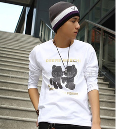 兩只小熊精梳棉超好手感男式長袖T恤JT03