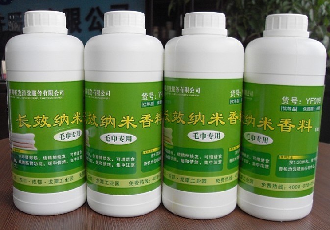 四川亞發(fā)清洗服務有限公司是國內(nèi)首家集洗滌用品生產(chǎn),洗滌設備銷售,商用毛巾租賃服務為一體的消毒毛巾包裝生產(chǎn)線配套供應服務商。主營業(yè)務有:商用毛巾專用洗滌設備生產(chǎn)·銷售,毛巾專用洗滌用品研發(fā)·生產(chǎn)·銷售,服務業(yè)所需的消毒毛巾租賃配送服務,針對客戶需求專門研發(fā)·生產(chǎn)對口產(chǎn)品,美容·美發(fā)等服務業(yè)專用毛巾訂制等。公司是目前國內(nèi)唯一一家能夠為商用毛巾洗滌,商用毛巾租賃需求方提供整套解決方案的企業(yè)。 本公司最新推出毛巾專用長效納米香料(德國原裝進口,純度絕對100%) 毛巾專用長效納米香料產(chǎn)品說明:毛巾專用長效納米香料加香一次留香1-3個月 留香時間視乎加香物體和加香技術(shù)、加香香料的成分與濃度,可用于酒店賓館,商用毛巾加香,我公司以極低的價格,高質(zhì)量的納米長效香料讓您得到市面上的香料所得不到的效果(本產(chǎn)品已經(jīng)獲得國家衛(wèi)生部門檢測合格證) 長效留香原理 : ★長效香料的原料構(gòu)成和生產(chǎn)工藝:長效香料是用食用酒精作溶劑,以食品級高分子包囊材料將天然或合成的香精在高溫高壓和反復乳化的情況下包在囊膜內(nèi)(包囊粒徑小于0。1微米),在可食用粘合劑的作用下穩(wěn)固化于各種表面。由于長效香料所使用的原料全是可食用的,因而對人體的皮膚、呼吸道、消化道及毛巾表面無任何傷害,而且酒精還可殺菌消毒、防腐、防蛀。 ★長效香料留香時間長的原理: 經(jīng)固香處理后,由于同種香精的分子在相同的環(huán)境中擴散速度是相對恒定的,固而香精分子在阻力越大(所需穿過的包囊膜和粘合劑)同向擴散距離越長(所需穿透的幾百萬層包囊膜)的情況下,香精擴散到空氣中所花的時間越長,則留香時間越長。而普通香水或水性香料因為沒有包囊膜的阻力,香精直接從吸附的纖維表面揮發(fā)到空氣中,一般6-13小時即全部擴散出來,故而留香時間極短。 它能令呼吸舒暢,使精神煥發(fā),可增進食欲,改善腸胃功能,緩和情緒,集中注意力。 使用方法:按1:20加水,用專用加香機均勻噴灑在毛巾上。