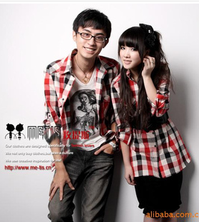 熱銷 時尚休閑 經(jīng)典英倫格子 長袖情侶襯衫 小額混批