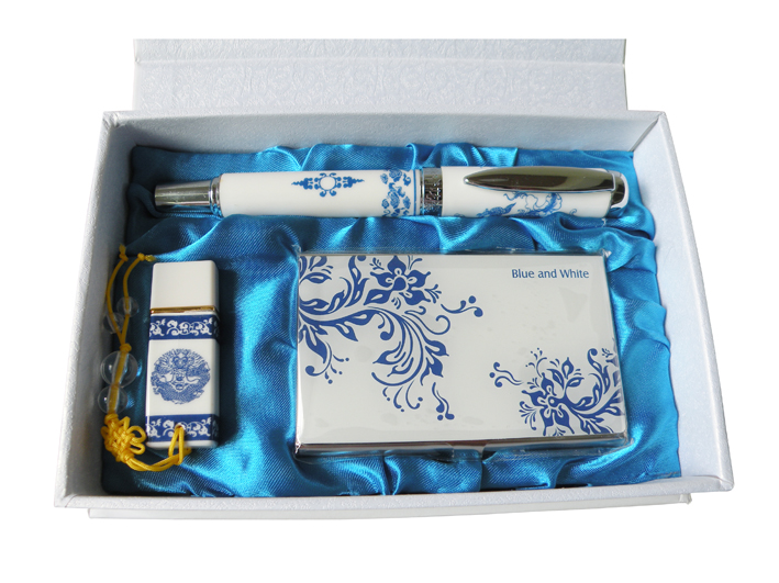 青花筆 青花U盤 青花名片夾 青花陶瓷筆 青花U盤套裝 青花名片夾套裝 中國紅瓷筆 禮品筆《廠家直銷》