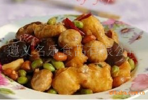 是歷史名城遵義仡佬人民世代相傳的風(fēng)味食品,是仡佬人民幾百年的飲食文化結(jié)晶。用明間獨(dú)有的近20道傳統(tǒng)工藝精致而成 含有豐富的植物蛋白,不含膽固醇。據(jù)西南農(nóng)學(xué)院測定,含有17種氨基酸,其營養(yǎng)成分易于人體吸收,是老少皆宜的營養(yǎng)食品,為筵席中的一味佳肴。 制造方法; 以黃豆為原料,將磨制成的豆腐切成小塊,形狀正方、長條、三角、有的菱形不等。去除百分之十的水份‘在用當(dāng)?shù)靥烊徊菽净覞a制3—4小時(shí),再放入桐殼灰(草木灰加適量白堿亦可)于鍋中炒制,炒好后,經(jīng)過專業(yè)師傅精選‘選擇優(yōu)質(zhì)彭殼產(chǎn)品‘去除表面百分之九十的木灰,即為豆腐果。由于草木灰、桐殼灰均含有堿性物質(zhì)’ 經(jīng)過漚、炒、兼之堿的化學(xué)作用,使豆腐外形凸脹,內(nèi)心松泡,狀若海綿。本產(chǎn)品為貴州遵義特產(chǎn) 食用方法:食用前用熱水或淘米水浸泡10分鐘左右(不能高于80攝氏度的水泡軟),再換清水輕揉,洗凈表面灰塵,食用方法較多,常用于煮食、炒食和涼拌,如燉雞、燉豬蹄、燉排骨,放入豆腐果稍煮一會,飽含鮮湯,鮮嫩馥郁。豆腐果與蔬菜共煮,用油辣椒蘸食,另有風(fēng)味。切成塊、片、絲,雜以肉片絲配炒,更有鮮味。可切絲涼伴,是清涼可爽口的素食。 鄭重提示:在購買或食用本公司產(chǎn)品前,請注意公司提示的“四個(gè)溫馨提示”即: 特別提示一:食用前必須熱水或淘米水將灰豆腐果泡軟!并用清水洗凈瀝干! 特別提示二:過期的灰豆腐果不能食用。 特別提示三;凡購買本公司的產(chǎn)品者,我們將揭誠為您服務(wù)! 灰豆腐果烘烤成干品,用塑料袋密封包裝,可存放一年以上。80年代,道真豆腐果經(jīng)開發(fā),投放市場。銷往江蘇、貴陽、湖南、浙江,山東等地。 咨詢熱線:廠址:0852-3116709 15120149020 貴陽熱線:18786302942 遵義名樂食品有限公司