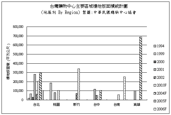 圖七:臺(tái)灣主要區(qū)域購(gòu)物中心樓地板面積