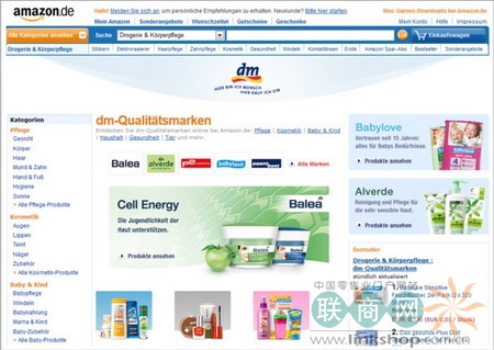 德國(guó)藥店連鎖dm開(kāi)始在網(wǎng)絡(luò)零售巨頭亞馬遜德國(guó)網(wǎng)站Amazon.de上銷(xiāo)售自有品牌產(chǎn)品,目前dm還沒(méi)有自己的網(wǎng)店。而此次的合作可以用最低成本的方式測(cè)試其電子商務(wù)之路,而對(duì)于亞馬遜而言,增加其分類(lèi)產(chǎn)品也能推動(dòng)網(wǎng)站的銷(xiāo)售額。