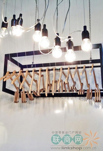 “會跳舞的衣架”——Olive Design出品,墻面有一個把手,可以將衣架搖下來,這時前面的一組燈泡就會呈波浪形上升下降。