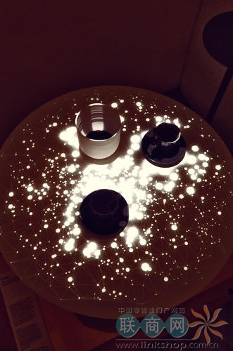 “移動咖啡杯”的投影系統(tǒng),將這個咖啡杯設(shè)置好自己喜歡的燈光效果后,會呈現(xiàn)出立體的燈效反射在桌面及墻紙上。
