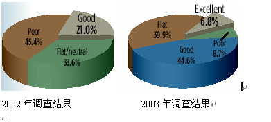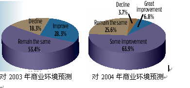 與2003年相比,零售商們似乎對(duì)未來(lái)一年的信心更足。大部分受訪者預(yù)期在新的一年里至少取得一些進(jìn)步,只有少數(shù)商家感覺(jué)和2003年差不多。