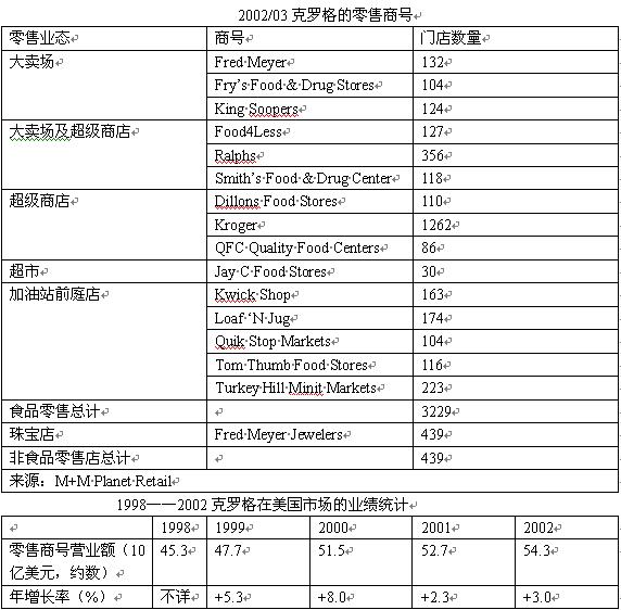 克羅格是美國(guó)第二大雜貨零售商,還是全美最大的超市運(yùn)營(yíng)商。雖然近來克羅格重點(diǎn)發(fā)展價(jià)格低廉的超級(jí)商店業(yè)態(tài)——Food4Less上,其實(shí)該公司旗下有多種零售業(yè)態(tài)。近年來,克羅格沒有進(jìn)行任何并購(gòu)交易,但隨著競(jìng)爭(zhēng)壓力加大,自然增長(zhǎng)越來越難,它或許會(huì)重新采用并購(gòu)戰(zhàn)略。
