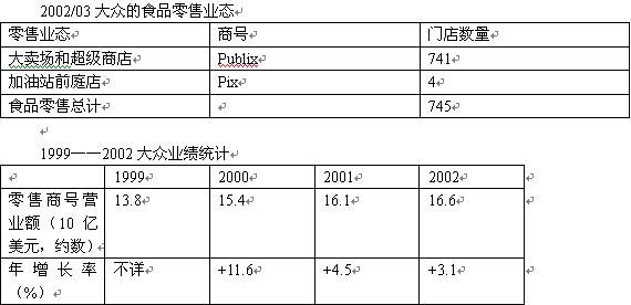 溫-迪克斯是一家地區(qū)性超級(jí)商店運(yùn)營(yíng)商,在佛羅里達(dá)、喬治亞和北卡羅萊那經(jīng)營(yíng)著Winn-Dixie, SaveRite和Thriftway三個(gè)商號(hào)。近年來,溫-迪克斯由于分散投資,業(yè)績(jī)有所下滑。目前,溫-迪克斯正忙于發(fā)展Winn-Dixie和SaveRite門店,前者迎合高檔消費(fèi)者,后者瞄準(zhǔn)的則是較為在意價(jià)格的顧客群體。